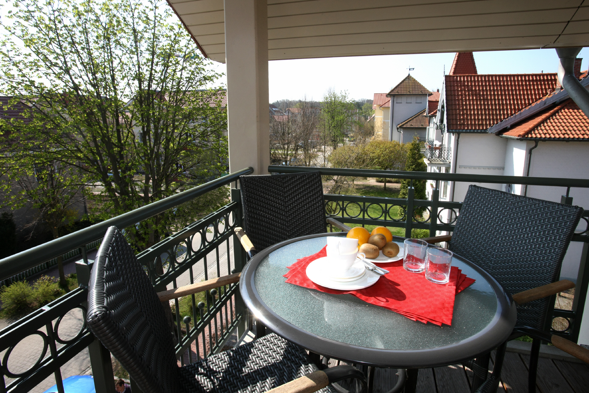 Auf diesem Balkon können Sie gemütlich sitzen, Frückstücken, Kaffee trinken, spielen oder einfach nur über das Kurviertel schauen.