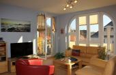 Außerdem können Sie von diesem Raum aus zu den beiden Balkonen mit Sitzmöglichkeiten und einem schönen Ausblick über das angrenzende Kurviertel gelangen.