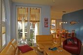 Das Wohn- und Esszimmer ist ein heller, freundlicher und komfortabel ausgestatteter Raum. Die moderne Ledergarnitur lädt zum Verweilen ein. Sie können hier natürlich auch einige Familienspiele sowie spannende Ferienlektüre finden.