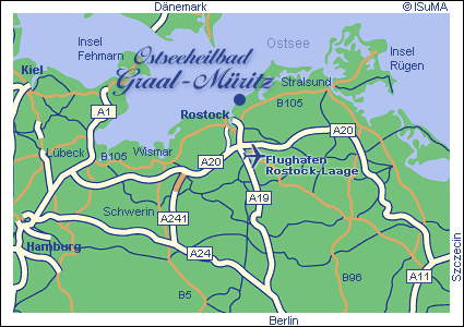 Bis Hauptbahnhof Rostock, dann umsteigen in den Zug oder in den Bus (fährt ca. alle 2 Stunden) nach Graal-Müritz |