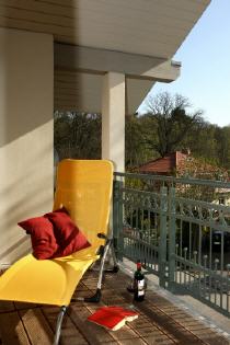 Auf diesem Balkon können Sie gemütlich sitzen, Frückstücken, Kaffee trinken, spielen oder einfach nur über das Kurviertel schauen. |