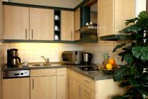 Die modern eingerichtete Küchenecke bietet alles, was man heute erwarten darf. Dazu gehören ein Ceran-Kochfeld, ein Kühlschrank mit einem 4-Sterne-Gefrierfach, ein Geschirrspüler, eine Multifunktions-Mikrowelle zum Grillen, Backen und Erwärmen und vieles mehr. Natürlich auch eine umfangreiche Ausstattung mit Geschirr, Besteck, Gläsern und sonstigem Zubehör. |