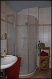 Modernes Bad mit Dusche,WC und Waschmöglichkeit. |